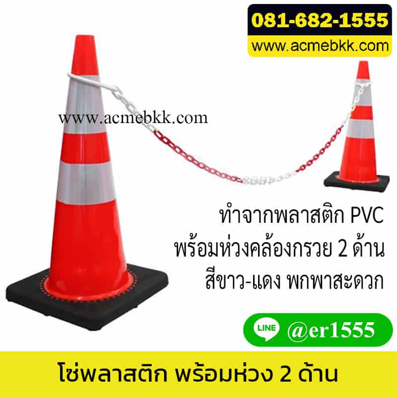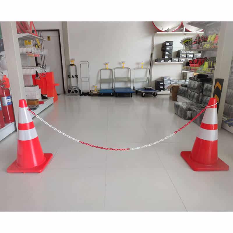 โซ่ขาวแดง โซ่พลาสติก พร้อมห่วงคล้องกรวย