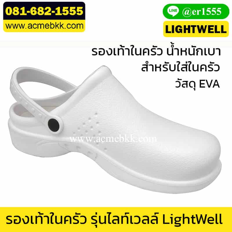 รองเท้าพ่อครัว รุ่น LIGHTWELL สีขาว ไม่ใช่หัวเหล็ก หน้ารองเท้ากว้างใส่สบาย ไม่บีบปลายเท้า ราคาคุ้มค่า คุณภาพเกินราคา สำหรับงานก่อสร้าง, โรงงานอุตสาหกรรม (Factory) เพื่อใช้ป้องกันการบาดเจ็บจากการทำงาน