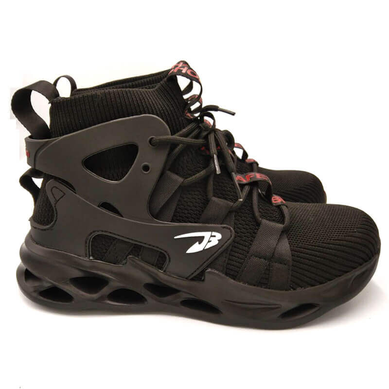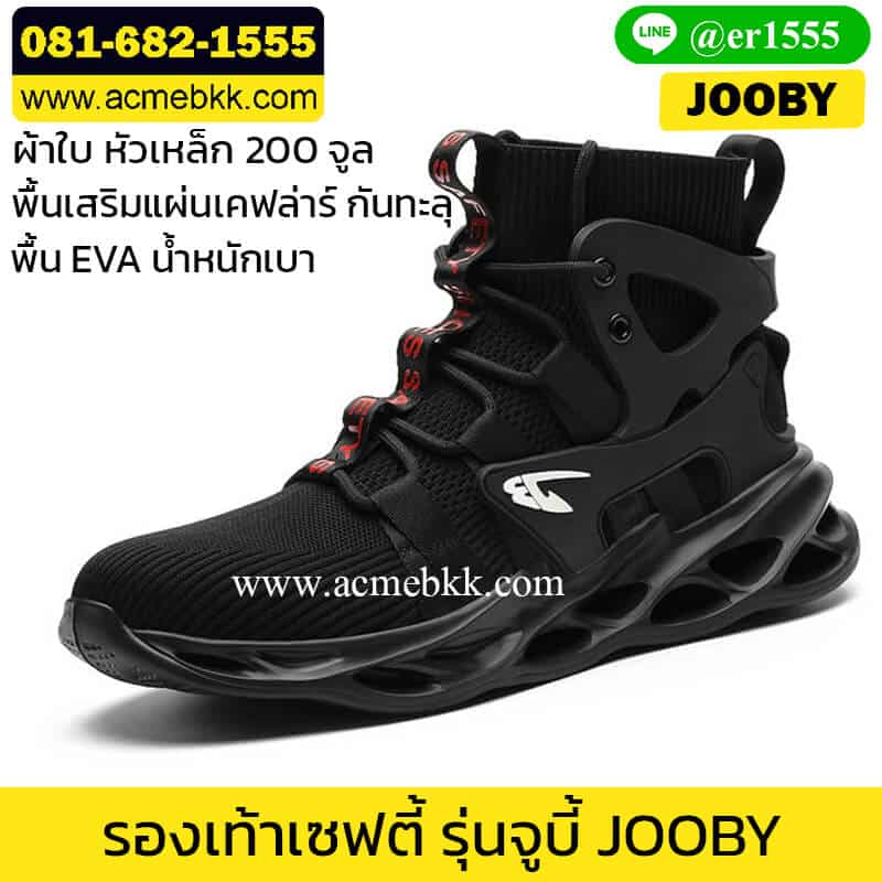รองเท้าหัวเหล็ก สีดำ รุ่น JOOBY สีดำ ผ้าใบเซฟตี้ หัวเหล็กมาตรฐานยุโรป 200 จูล หน้ารองเท้ากว้างใส่สบาย ไม่บีบปลายเท้า พื้นเสริมแผ่นเหล็กกันตะปูได้ ราคาคุ้มค่า คุณภาพเกินราคา สำหรับงานก่อสร้าง, โรงงานอุตสาหกรรม (Factory) เพื่อใช้ป้องกันการบาดเจ็บจากการทำงาน