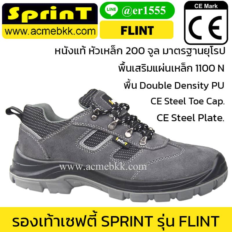 รองเท้าเซฟตี้ หัวเหล็ก รุ่น FLINT หนังกลับ หัวเหล็กมาตรฐานยุโรป 200 จูล หน้ารองเท้ากว้างใส่สบาย ไม่บีบปลายเท้า พื้นเสริมแผ่นเหล็กกันตะปูได้ ราคาคุ้มค่า คุณภาพเกินราคา สำหรับงานก่อสร้าง, โรงงานอุตสาหกรรม (Factory) เพื่อใช้ป้องกันการบาดเจ็บจากการทำงาน