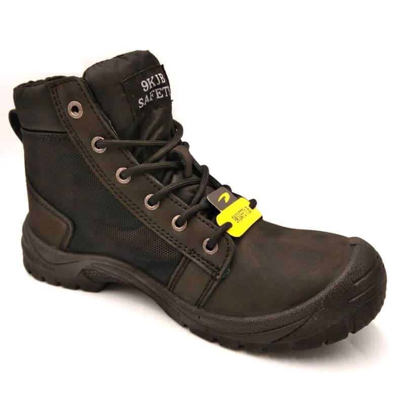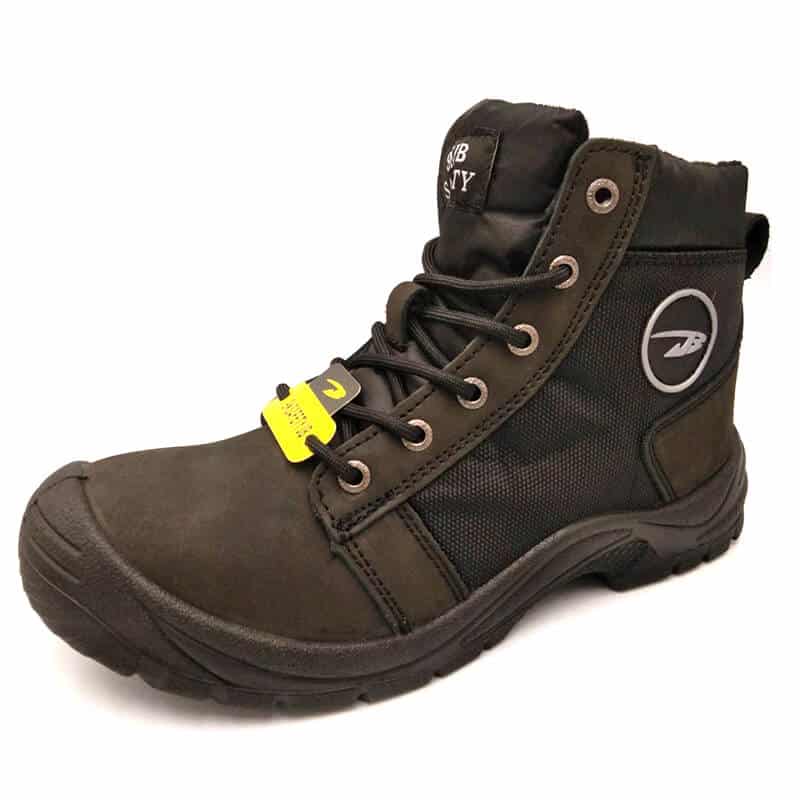 รองเท้า safety สีดำ รุ่น JOOBY สีดำ หนัง หัวเหล็กมาตรฐานยุโรป 200 จูล หน้ารองเท้ากว้างใส่สบาย ไม่บีบปลายเท้า พื้นเสริมแผ่นเหล็กกันตะปูได้ ราคาคุ้มค่า คุณภาพเกินราคา สำหรับงานก่อสร้าง, โรงงานอุตสาหกรรม (Factory) เพื่อใช้ป้องกันการบาดเจ็บจากการทำงาน