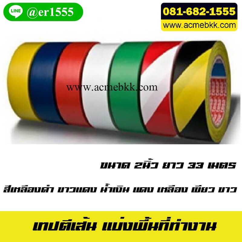 เทปตีเส้น เทปติดพื้น ใช้ติดพื้นแสดงขอบเขต พื้นที่หวงห้ามที่อันตราย และใช้บ่งบอกจุด ตำแหน่ง แสดงการทำงานของเครื่องจักร