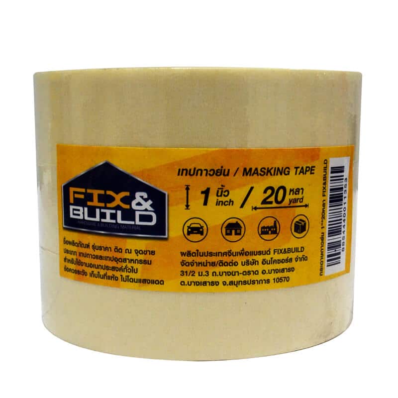 กระดาษกาวย่น 1″*20 หลา FIX&BUILD+(แพค3ม้วน)