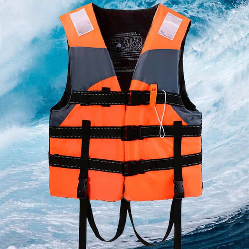 เสื้อชูชีพ ติดแถบสะท้อนแสง พร้อมนกหวีด ล็อคก้ามปู Free Size