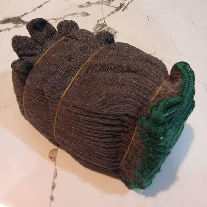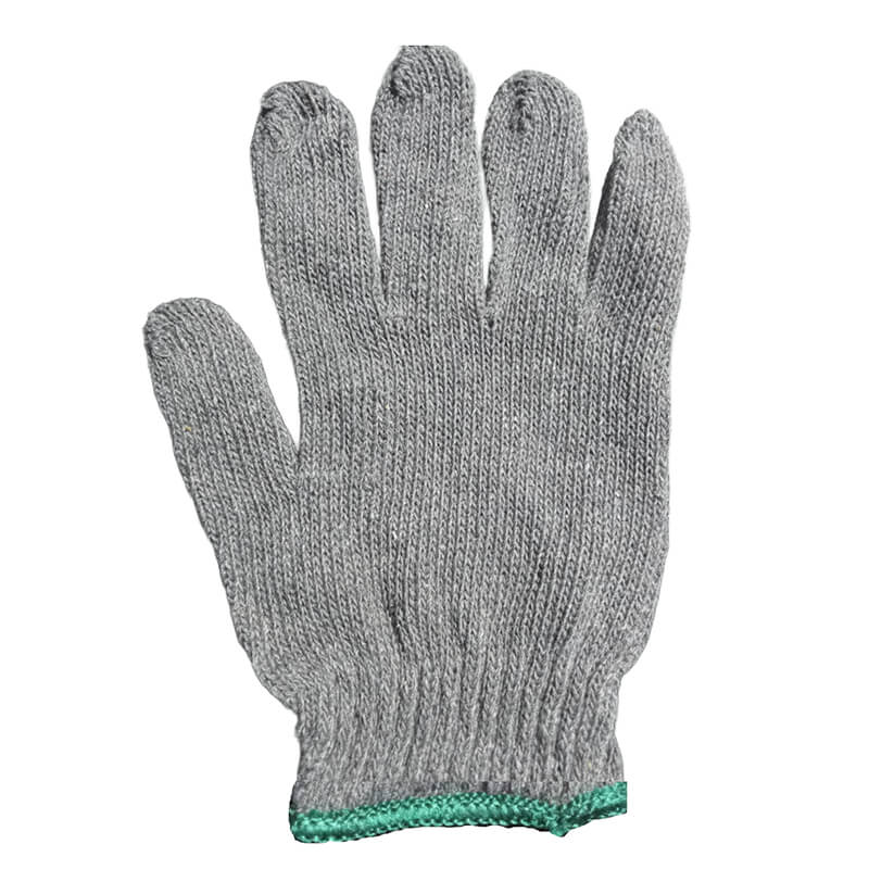 ถุงมือผ้าสีเทา 5 ขีด ไม่ฟอก ขอบเขียว (12 คู่)