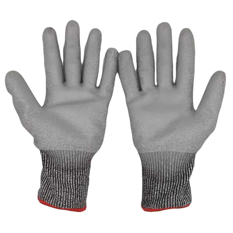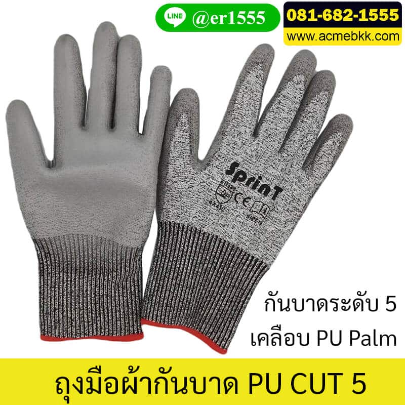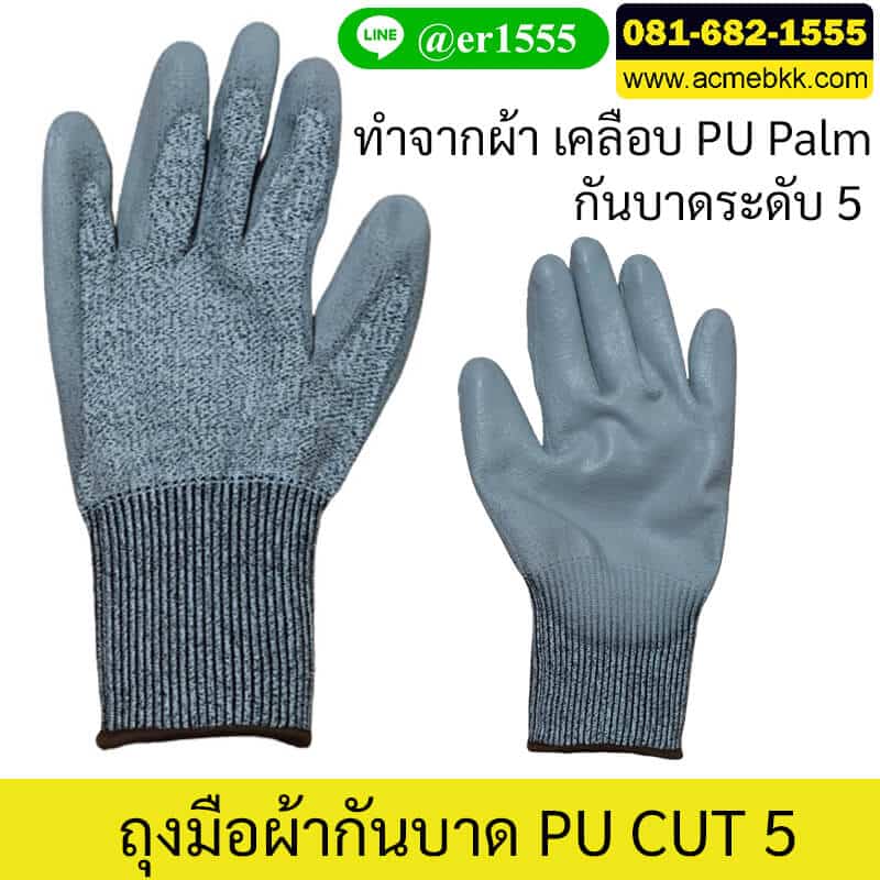 ถุงมือผ้า กันบาด ทำจากผ้า เคลือบ PU Palm Coated CUT5 สีเทา