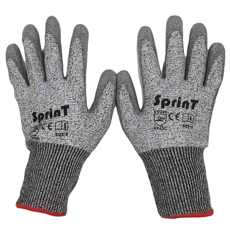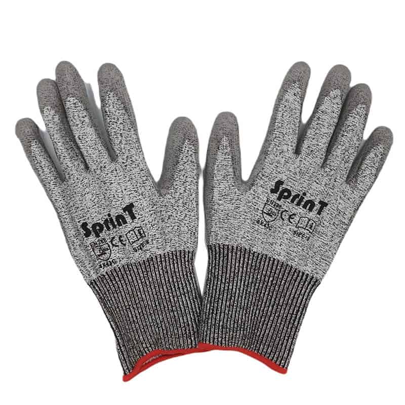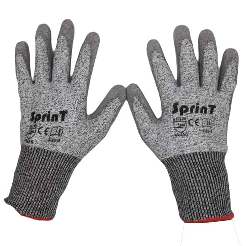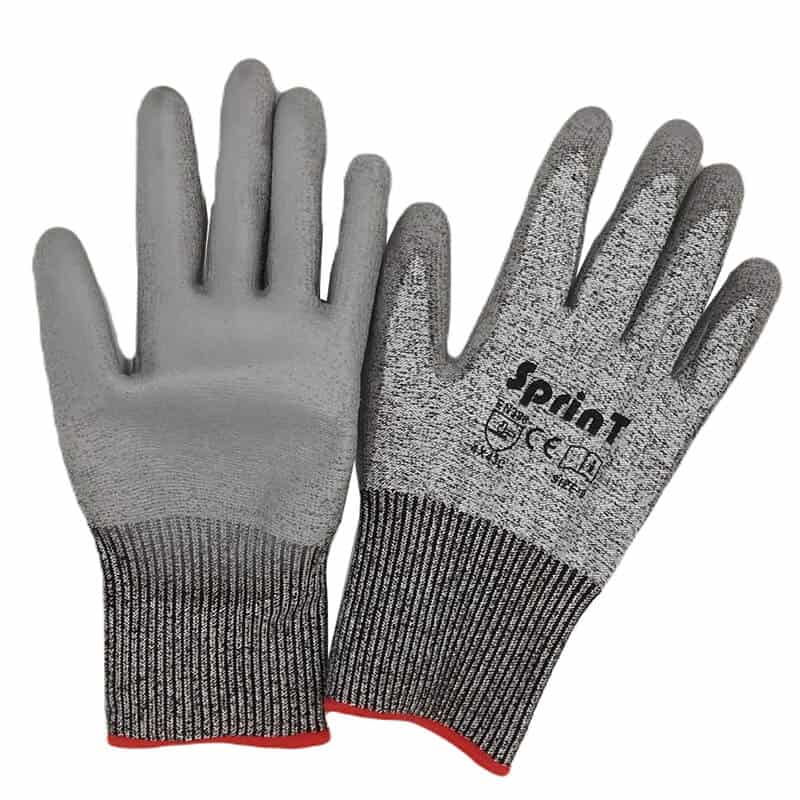 เคลือบ PU Palm สีเทากันลื่น และกันบาดระดับ 5